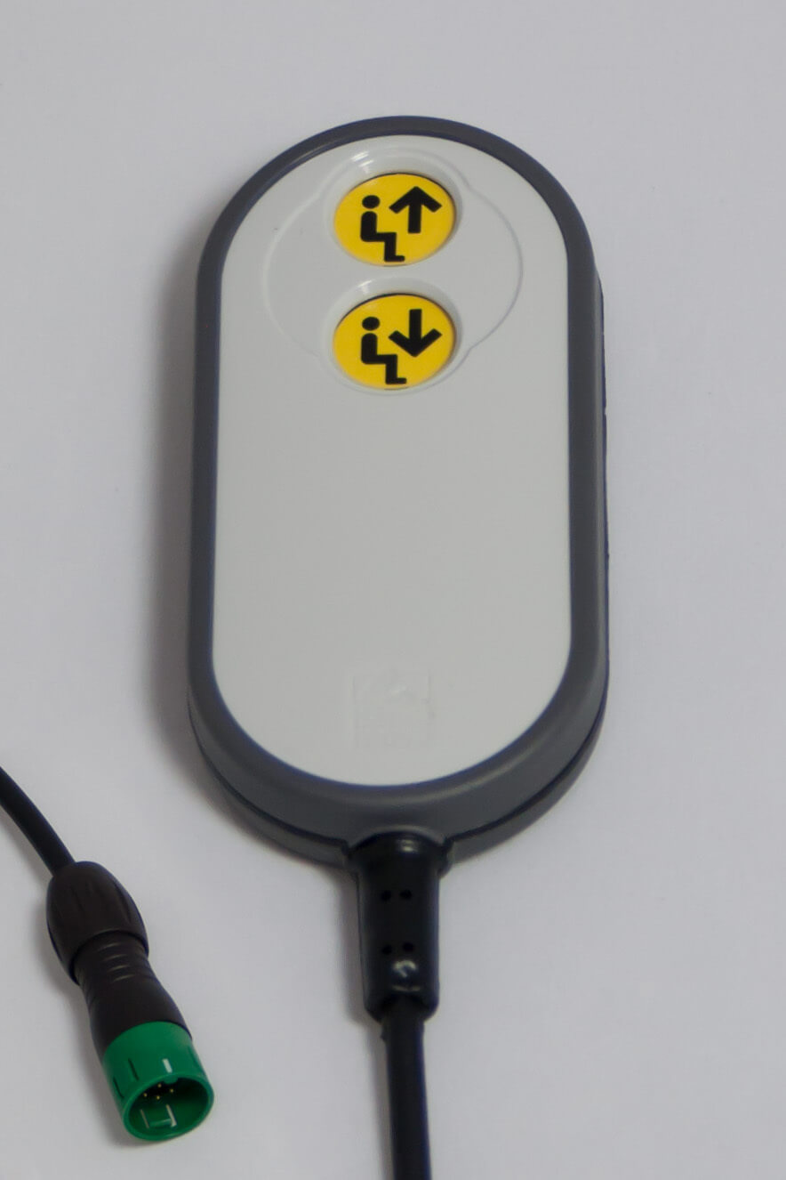 Dado que funciona con baterías a baja tensión 24V c.c. puede ser utilizada sin peligro alguno en un ambiente húmedo. Su seguridad viene incrementada por un botón de paro de emergencia, permitiendo, si se da el caso, inmovilizar el brazo.