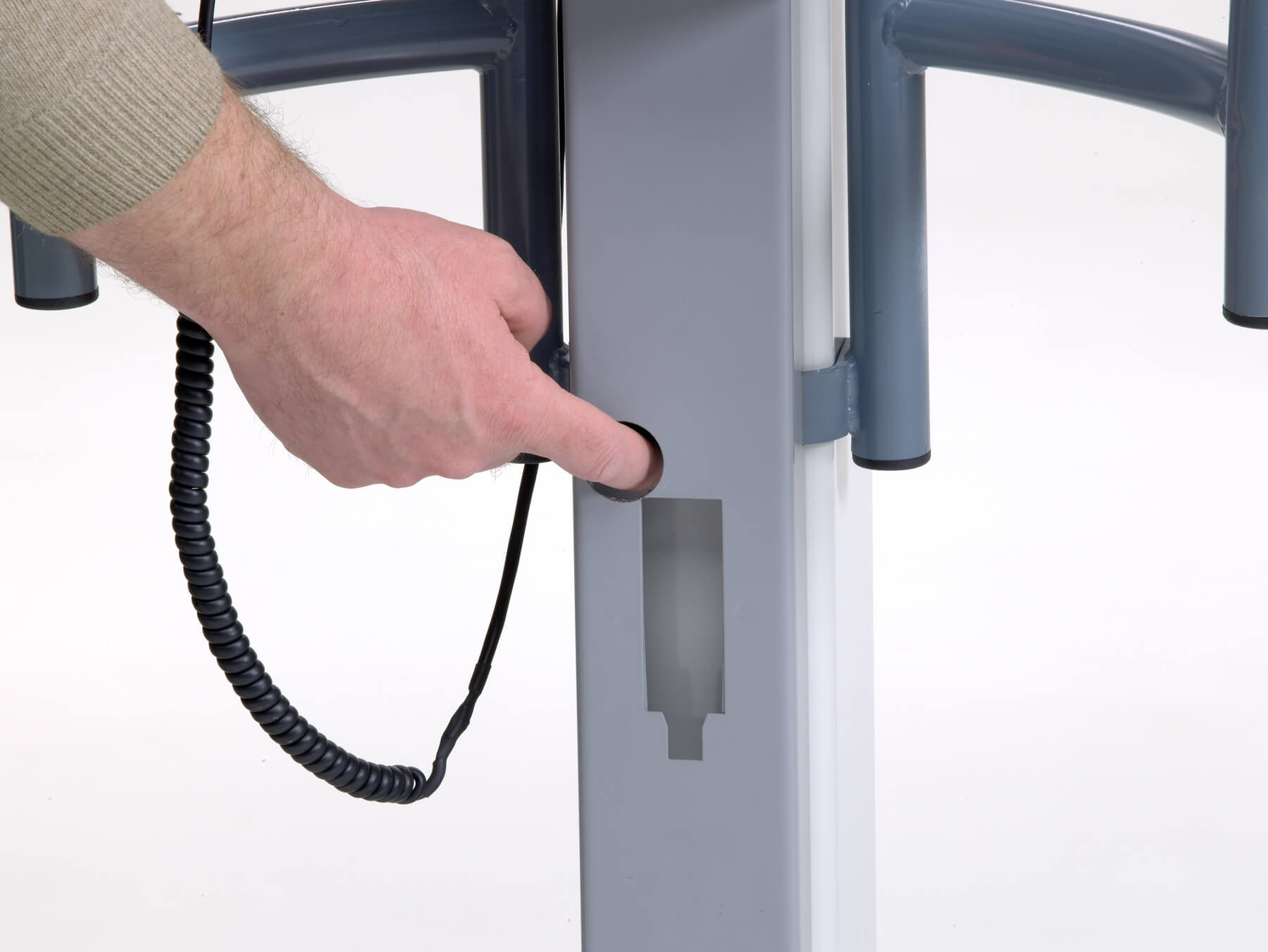 En la mayoría de elevadores, los fabricantes recomiendan un cambio del mismo tras 10.000 ciclos. No obstante, este principio no se aplica al modelo Victor. Gracias a su amplio campo de acción, la grúa Victor puede elevar a una persona desde el suelo. El usuario dispone de un gran espacio libre a la altura de las piernas, pero puede girar libremente, lo que facilita los cuidados.
