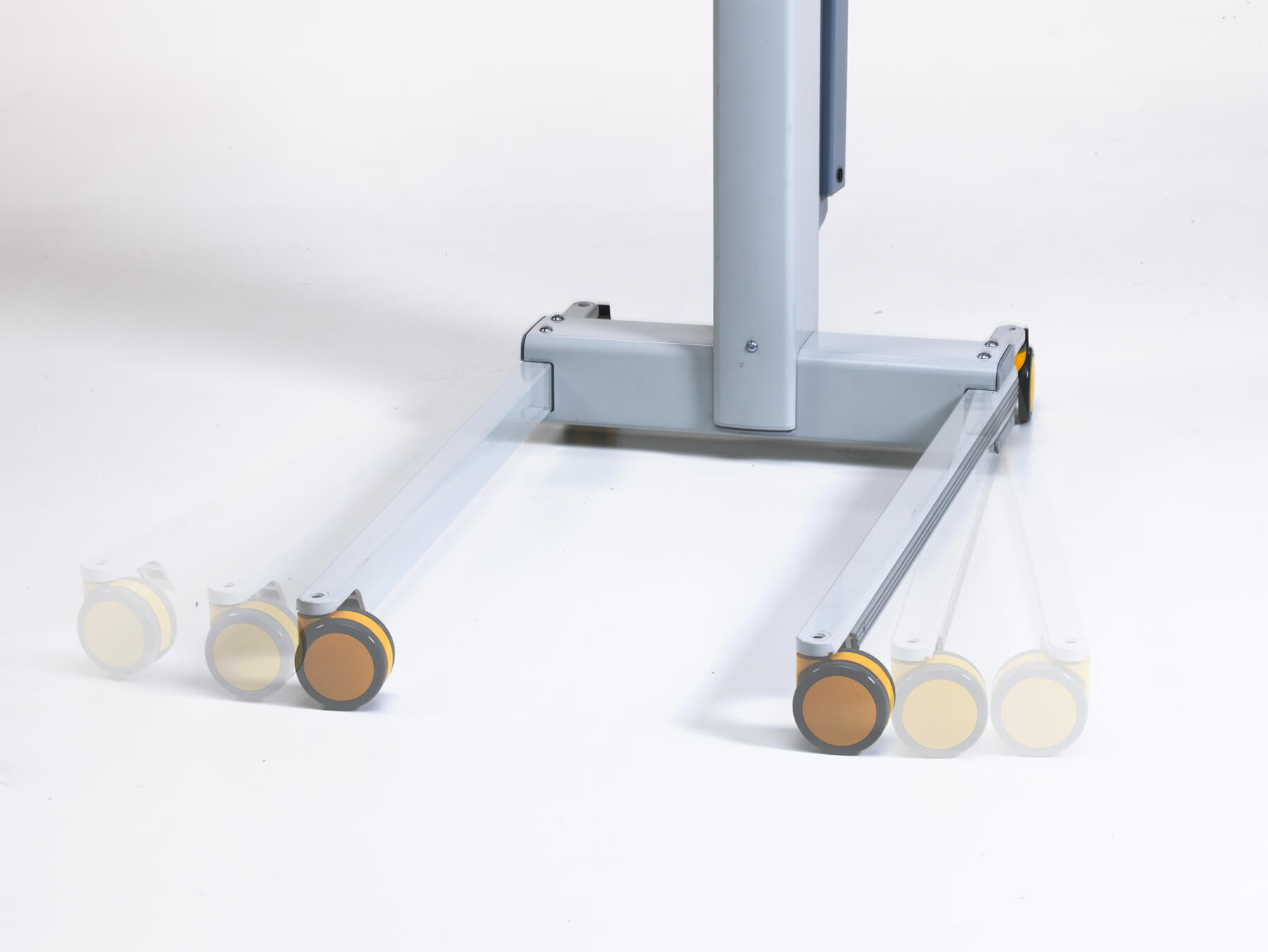 El modelo Victor está fabricado en aluminio y acero inoxidable. Por ello, el aparato es duradero, resistente a la corrosión y de fácil mantenimiento. La base dispone de bordes de goma resistentes a los golpes. Las sólidas ruedas con mecanismo de aluminio pueden soportar 125 kg cada una y pueden desmontarse fácilmente para su limpieza.