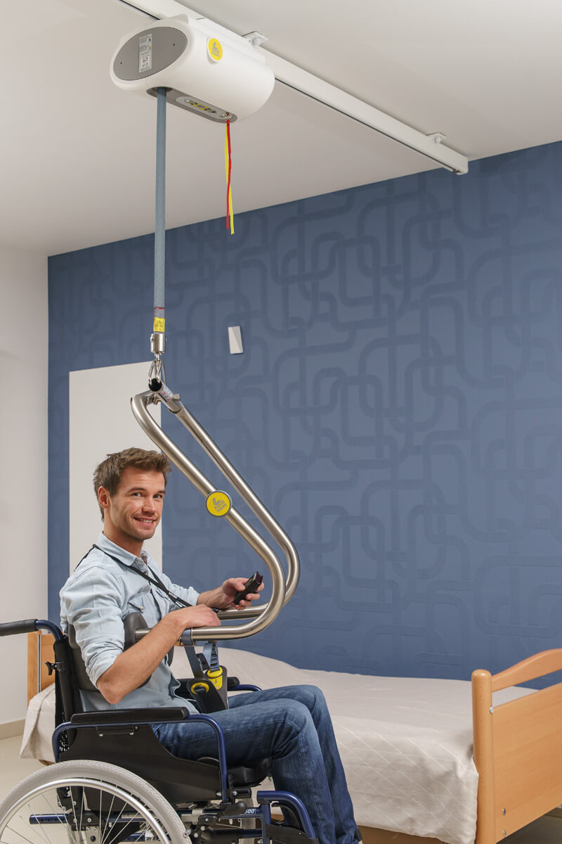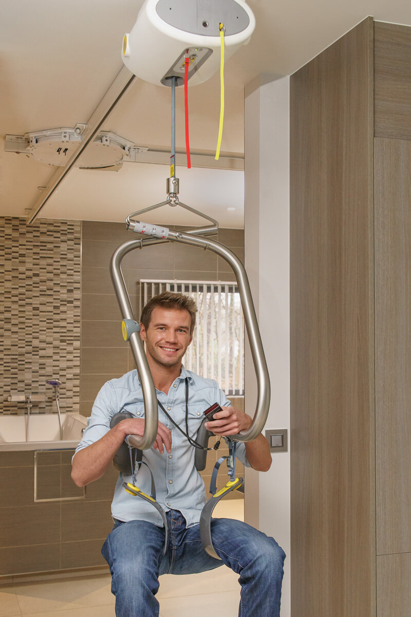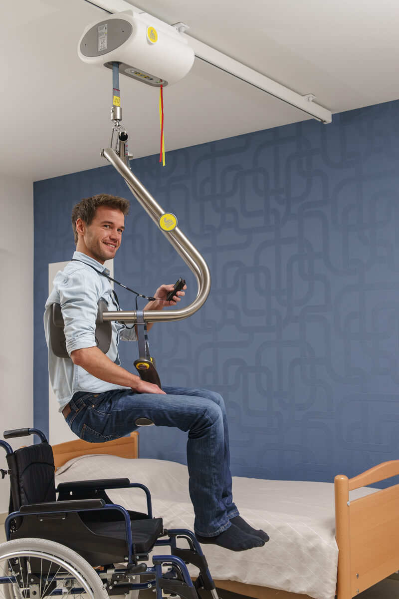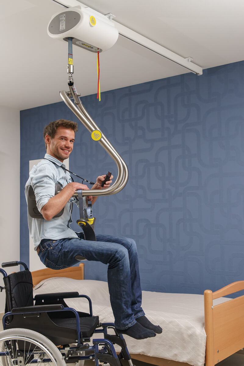 Cuando el Sure Hands nos levanta, es como si nos levantaran dos manos que nos rodean y aprietan por debajo de las axilas. La presión ejercida por las manos preformadas se adapta automáticamente al peso del usuario, repartiéndose su peso uniformemente. La parte inferior del cuerpo es sostenida por dos soportes a nivel de muslos.
