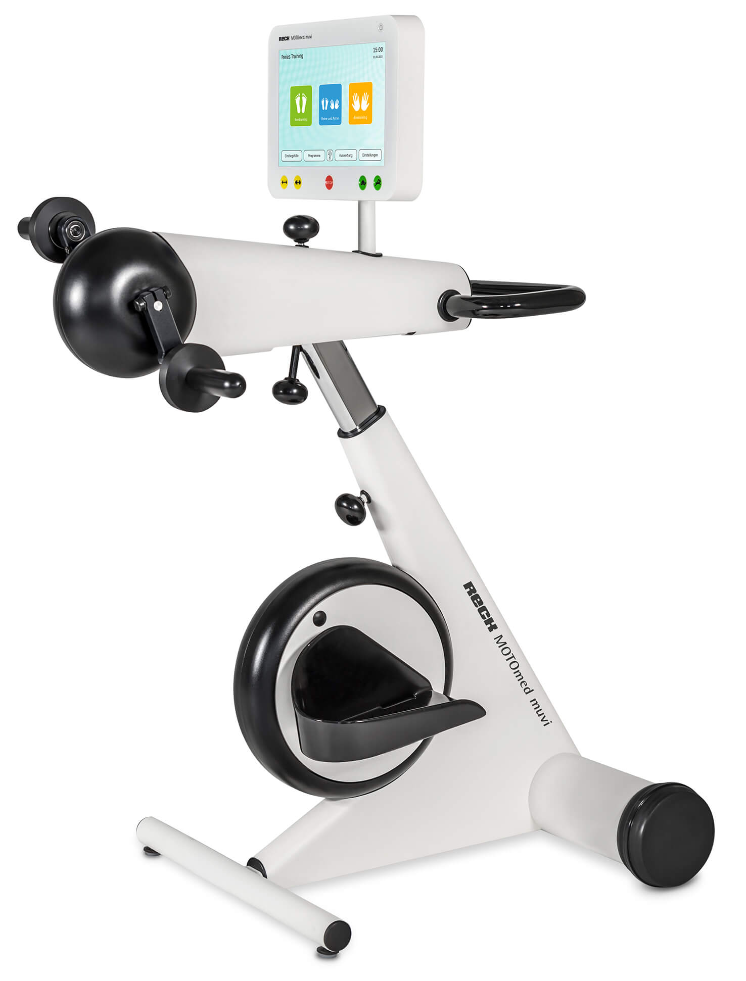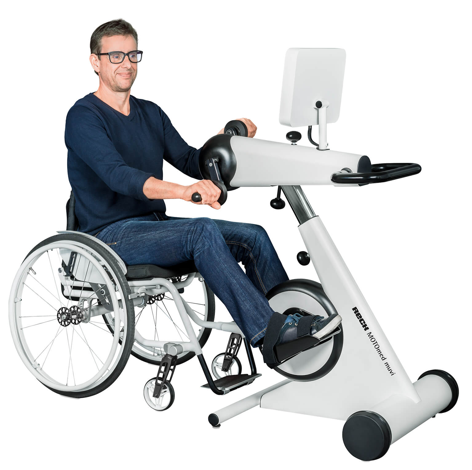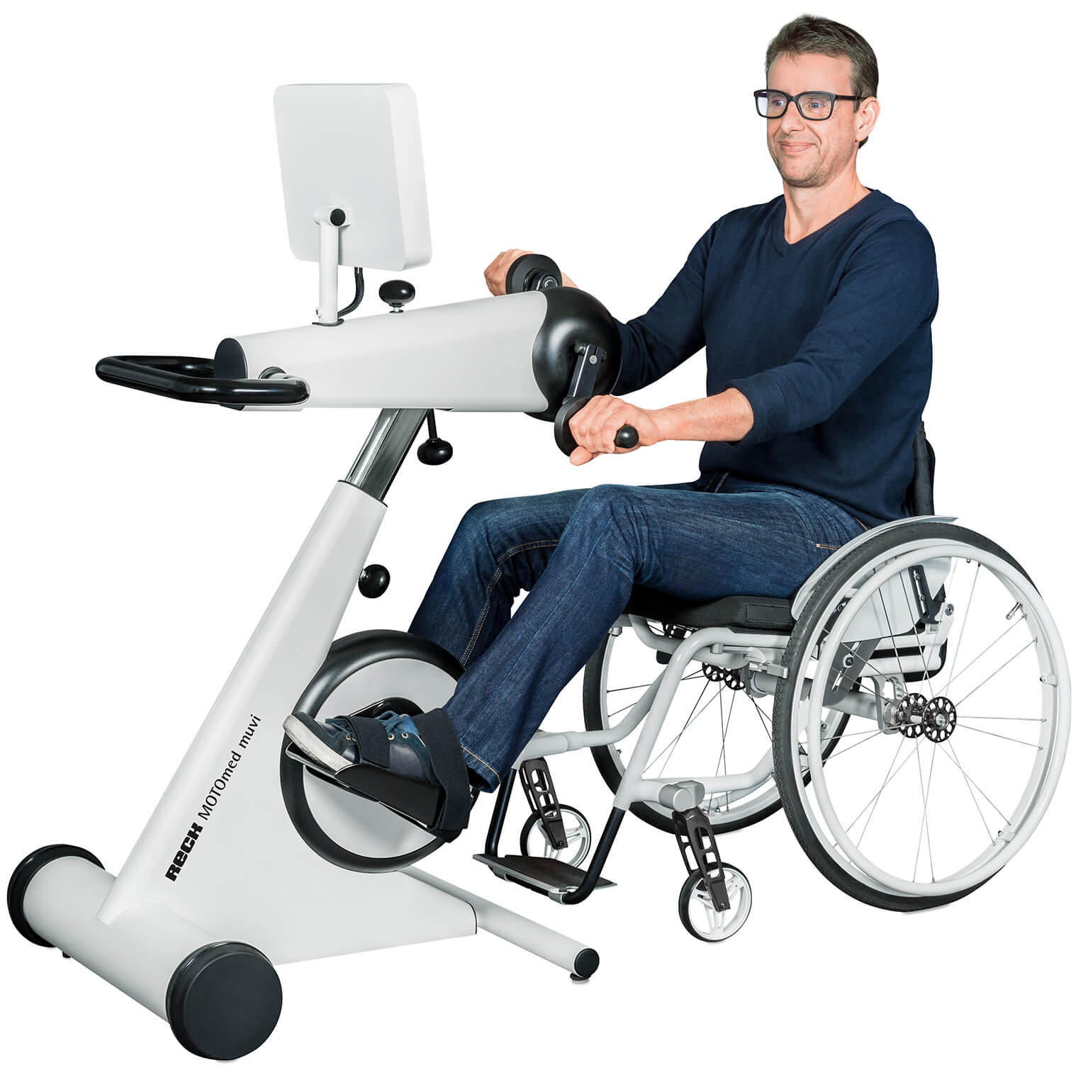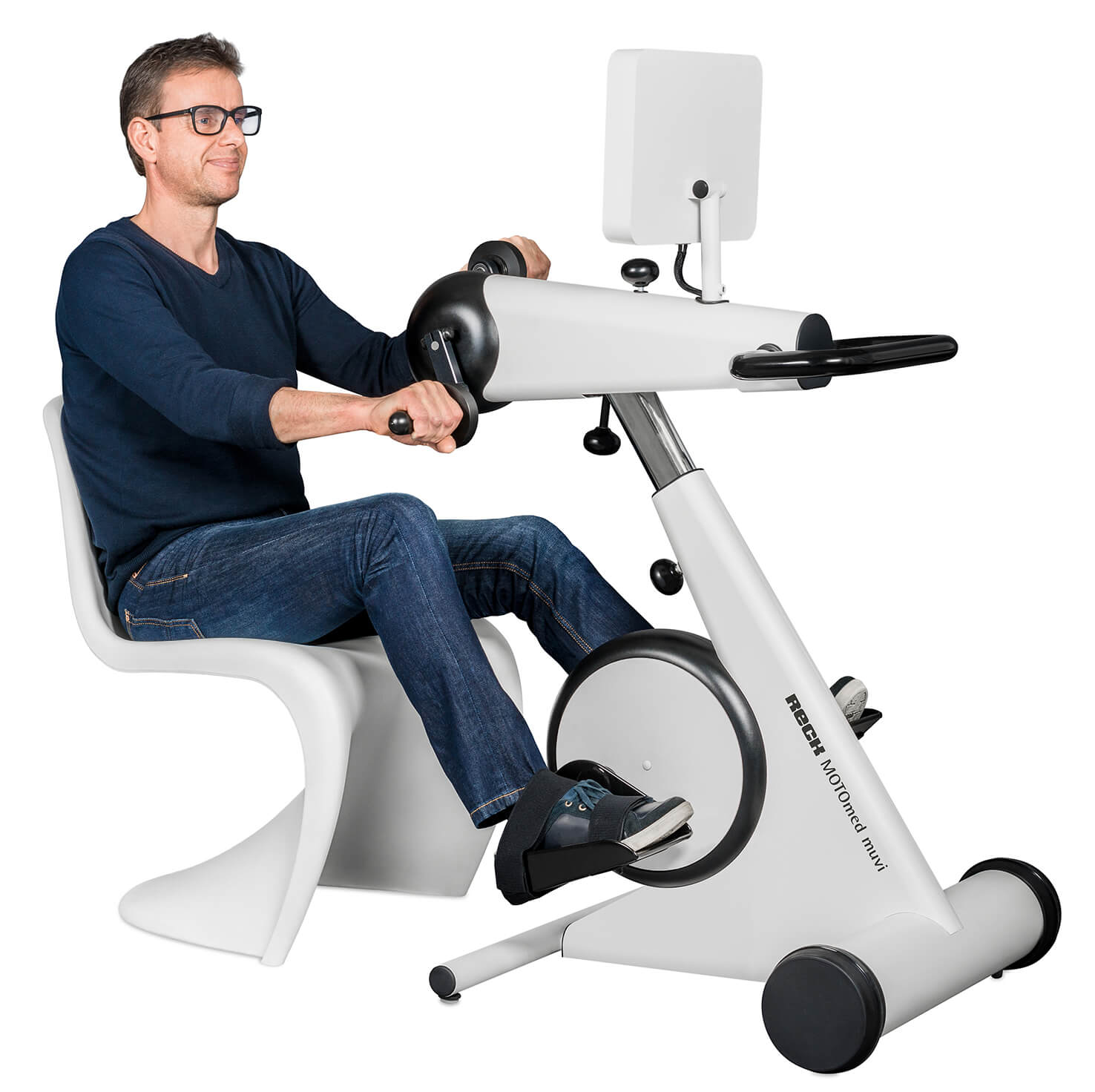 En los equipos cinesiterapéuticos de la familia MOTOmed el paciente mismo decide si quiere entrenar con o sin motor. El concepto innovador del entrenamiento simultáneo para todo el cuerpo es una característica que hace el MOTOmed muvi único. El movimiento controlado digital y de forma inteligente responde a cada usuario individualmente. Con un diseño agradable y un concepto de higiene mejorado cumplen con todas expectativas referente a calidad, manejo y ergonomía. Así existe una gran variedad de posibilidades y el nuevo MOTOmed muvi es ideal para las personas modernas en movimiento.